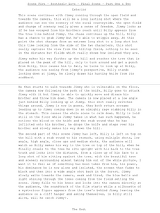 This film uses a lot of natural lighting throughout which I find very satisfying to see when watching a film, I will use this in my film, I want to use as much natural lighting as possible to give my film a raw and fresh feeling, the shadows of the tree's can also give my film a gritty when combined with all the greens and browns the forestry supplies me with.