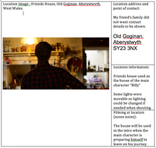 I also think he did really well for his first time properly acting, he played a small part in my last FMP too which I think also prepared him for the role as he saw how I am directing on set. I think that these two actors also work really well together they were both supportive of each other throughout filming the only problem we game across was when we were filming the last scene, everyone was cold and tired after a long day on set in the cold and wet welsh weather. Overall I think my casting was good, I was very pleased into how my actors represented my characters, I think they both matched the role as two brothers they could easily be related when seen next to each other.
